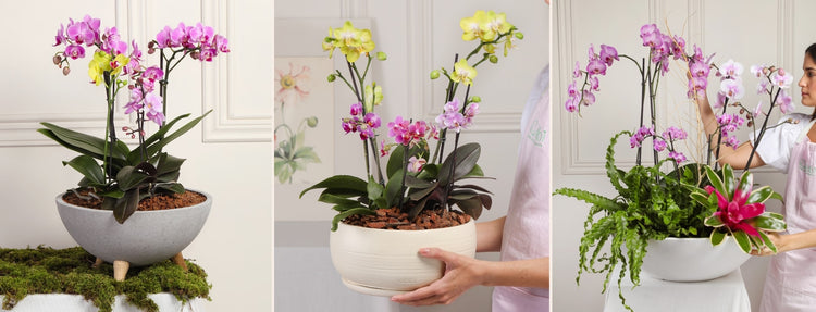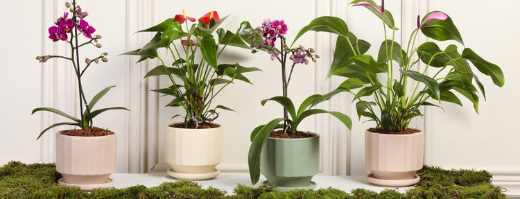 Para centros de mesa, preferimos macetas bajas y anchas. Permiten que las flores se abran y se luzcan. ¡Son perfectas para mesas de comedor o salas!