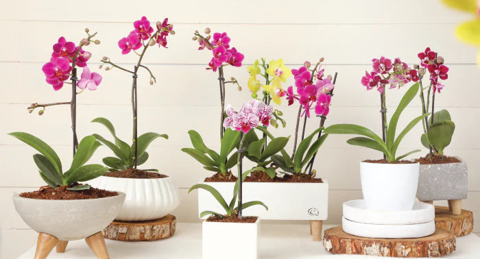 Arreglo de Orquideas Magic Monarca (Sólo en Medellín)Arreglo de Orquídeas en bowl en concreto con patas en madera adornado con 3 charms de mariposas para resaltar y llenar de magia tu arreglo de orquídeas. ¡Todo empacado en una cajita de cartón hermosa y listo para regalar! Todas las plantas vienen con un código QR que podrás escanear para conocer sus cuidados y aprender tips y trucos para que permanezcan hermosas.
