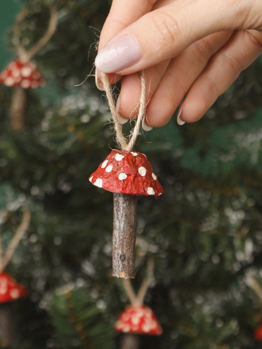 Amuleto de navidad en forma de hongo para colgar en el árbol y llevar vida a tus espacios en esta época especial. Cada hongo es una pieza única y diferente a las demás. Hechos a mano por dos artistas antioqueños a partir de la magia que tienen en sus manos, cajas de huevos y troncos de madera natural.