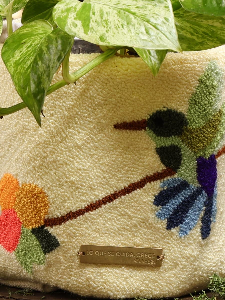 Cada pieza es un homenaje a Colombia. Obras de arte tejidas a mano por artesanas de la comunidad Wayuu, inspiradas en las aves que llenan de color y vida nuestros paisajes. Tejida a mano en técnica "Pellón" propia de las comunidades Wayúu de la Guajira, cada puntada guarda horas de dedicación, tradición y belleza. Cada pieza es única y toma más de 10 días en ser terminada. ¡Todo empacado en una cajita hermosa, listo para regalar! Todas las plantas vienen con un código QR que podrás escanear para conocer sus cuidados y aprender tips y trucos para que permanezcan hermosas.
