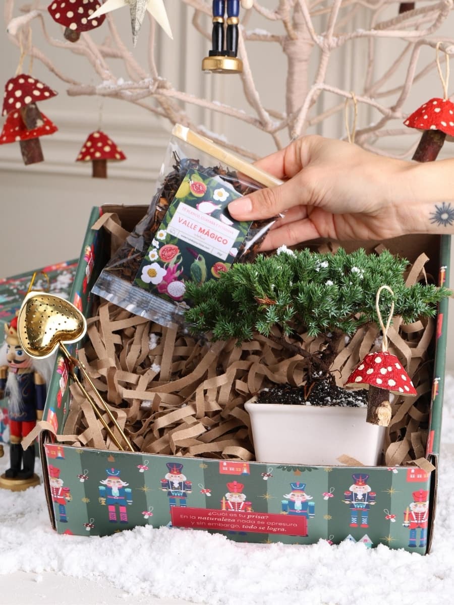 El bonsái, símbolo de eternidad, se une a la calidez de una infusión orgánica con notas de guayaba y pitahaya. Un instante de paz para saborear la vida, honrar lo que perdura y celebrar la magia de los pequeños rituales.