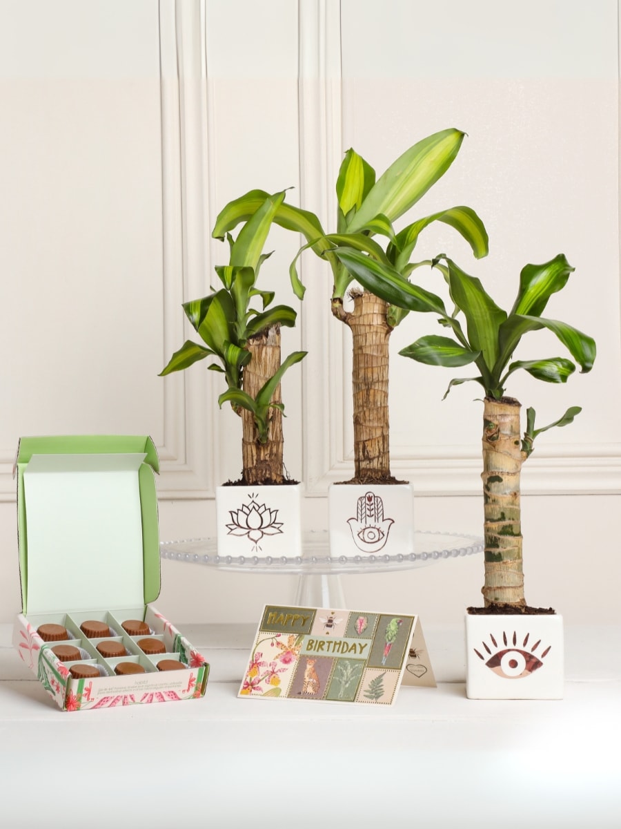 ¡Todo empacado en una cajita de cartón hermosa, lista para regalar! Incluye las instrucciones de cuidado de la planta.