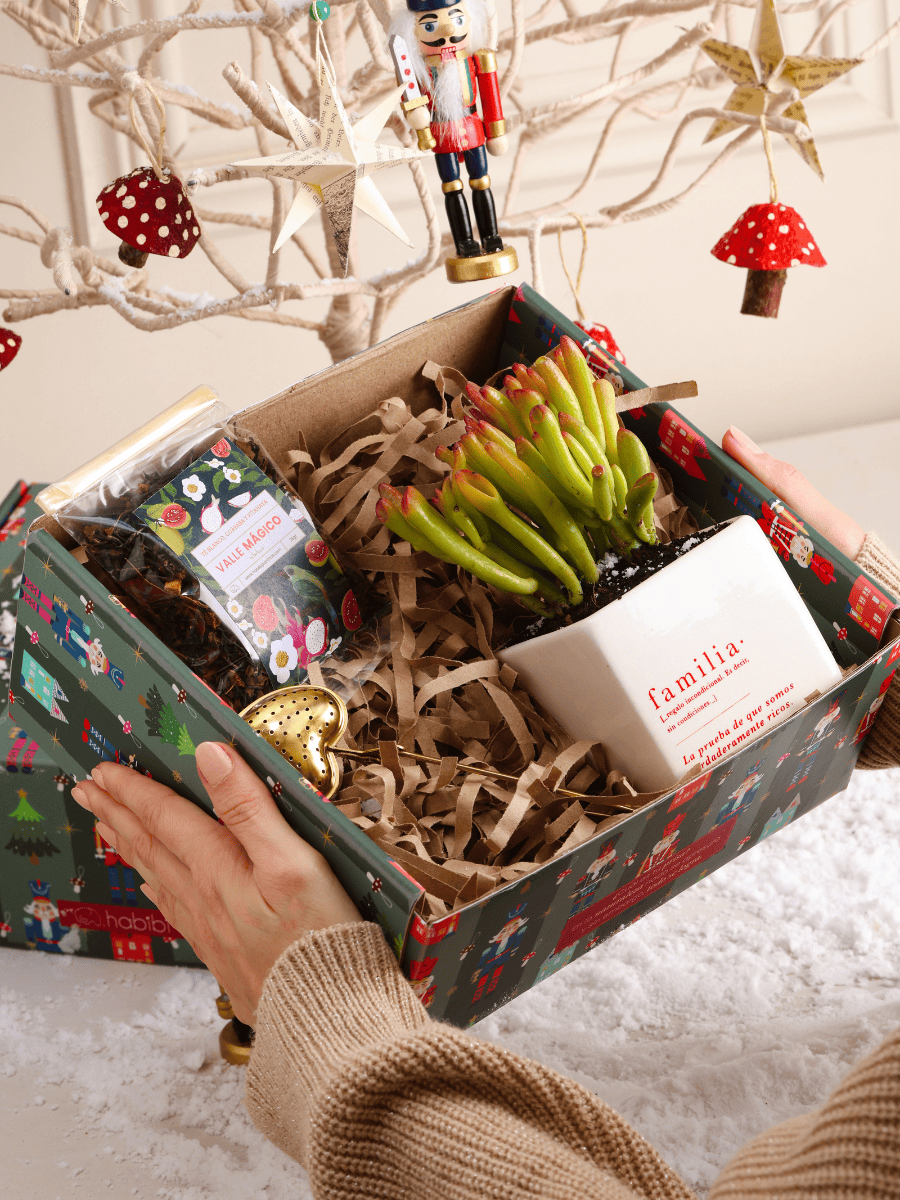 Familia: Regalo incondicional, es decir, sin condiciones. ¡Regala vida y haz un homenaje a esos tesoros invaluables de la vida! ¡Todo empacado en una cajita hermosa Edición Especial de Navidad, listo para regalar! Todas las plantas vienen con un código QR que podrás escanear para conocer sus cuidados y aprender tips y trucos para que permanezcan hermosas.