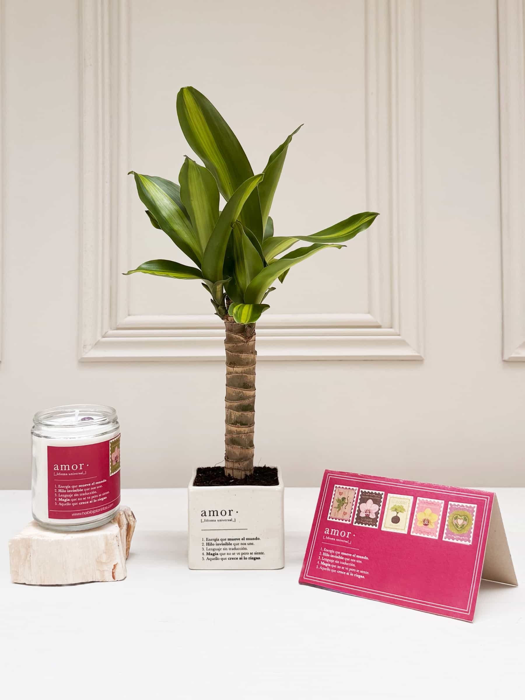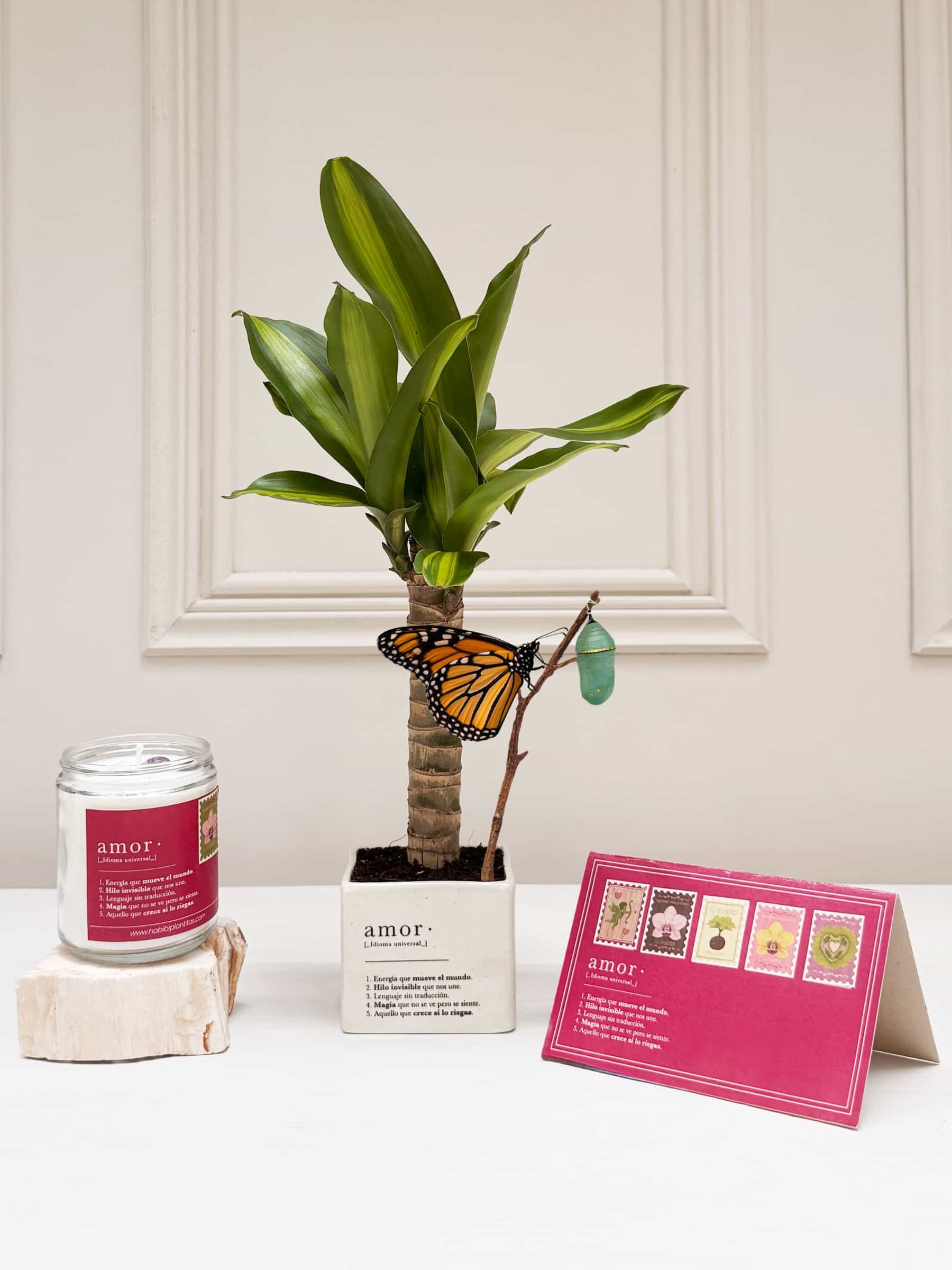 ¡Todo empacado en una cajita de cartón hermosa, lista para regalar! Incluye las instrucciones de cuidado de la planta.