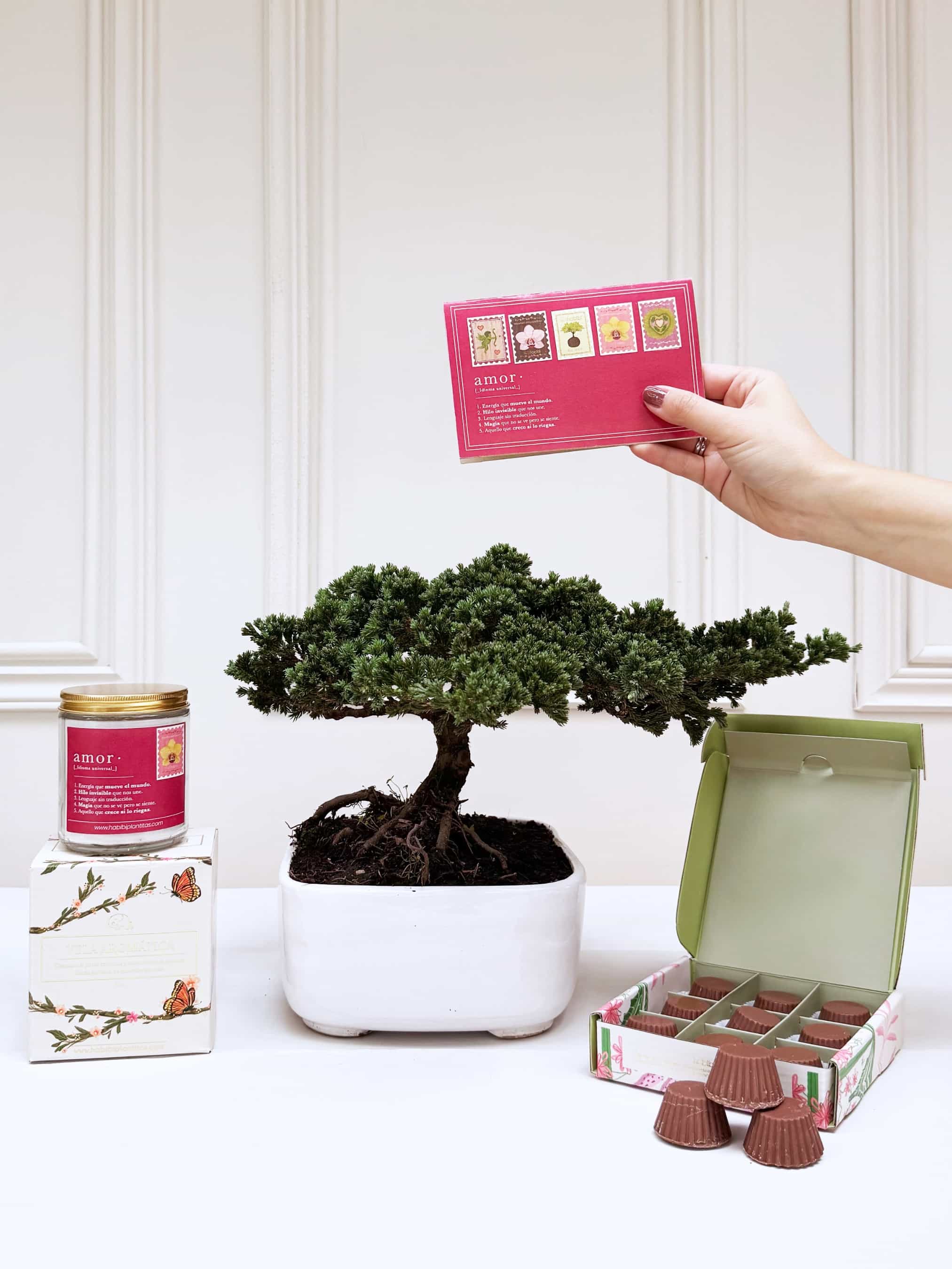 Incluimos recomendaciones de riego, luz y mantenimiento para que tu bonsái conserve su vitalidad. Con los cuidados adecuados, esta joya viva florecerá contigo durante muchos años.