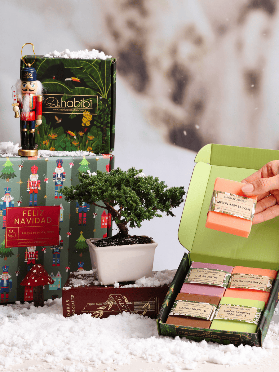 Un regalo que celebra la vida y el equilibrio. Incluye un bonsái, símbolo de paciencia y armonía, y un set de jabones botánicos inspirados en la exuberancia tropical de Colombia.