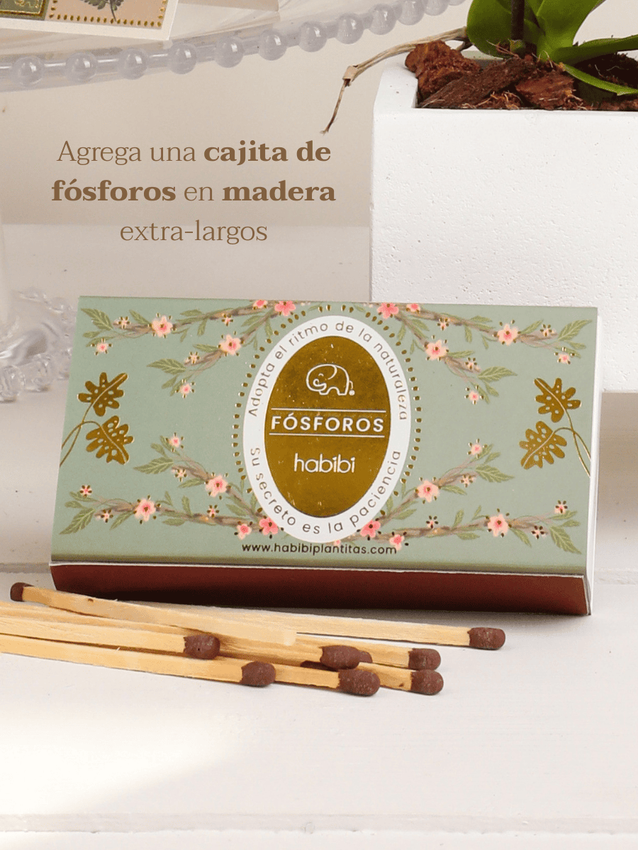 Puedes agregar una caja hermosa de fósforos en madera extralargos, tan bonita que también decora cualquier rincón.